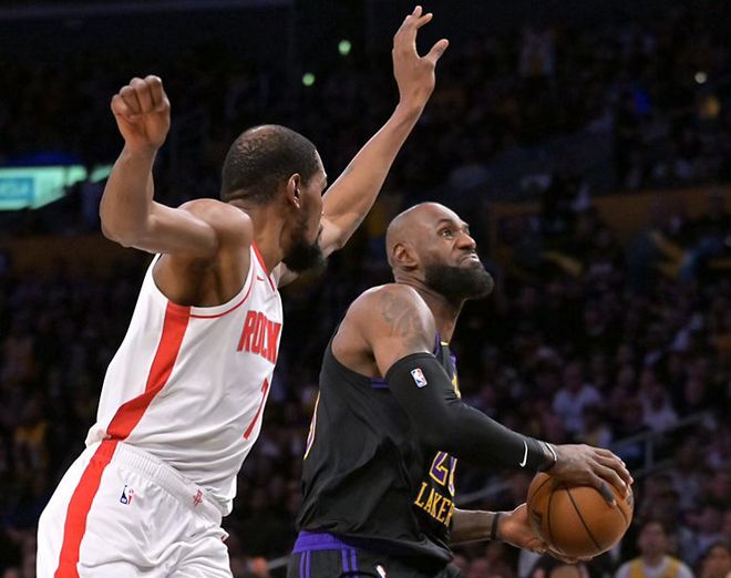 反观湖人队,没有东契奇和里夫斯,却在老詹的带领下打出了风调雨顺的进攻!此役,老詹出战39分钟,贡献28分+8篮板+7助攻+1抢断的全面数据!跟杜兰特一样,老詹愈老愈妖依然能飞天遁地;跟杜兰特不一样的是,老詹阅读防守破包夹的能力是历史顶级的,火箭防守给什么,老詹就能要什么,得分组织一把抓呼风唤雨!更关键的是,41岁的老詹比37岁的老詹幸运,即便没有东契奇和里夫斯,他身边总有巨头挺身而出为其减负, 你不得不感慨:湖人巨头真多!