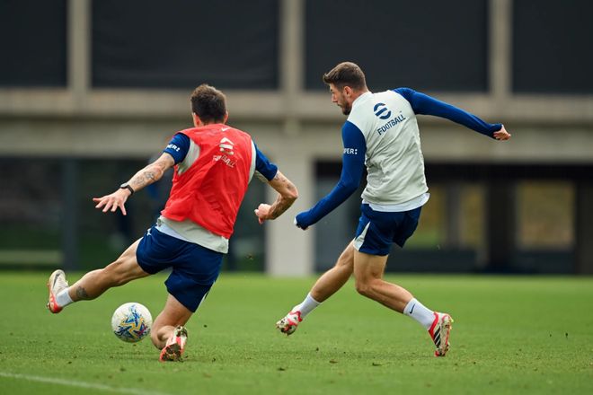当地时间周三上午,蓝黑将士们现身BPER训练中心,在齐沃及其教练组的指导下进行了又一堂训练课。